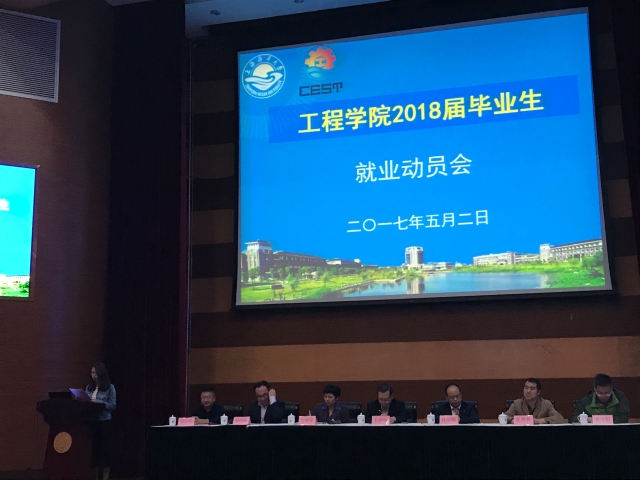 为推进就业工作,5月2日下午13:00,565net必赢客户端在图文信息中心104召开2018届本科毕业生就业动员大会。565net必赢客户端全体院领导、系主任及专业负责人、校办副主任张雅林、上海史必诺物流有限公司总经理孙昌翰、人事经理陈锡婷、优秀毕业生龚皓天以及2018届毕业生出席本次动员会。