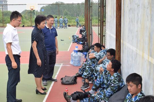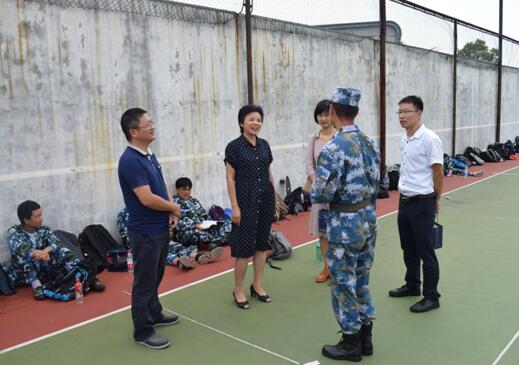9月20日上午,2017级新生军训正如火如荼地进行,565net必赢客户端党委书记王明华、党委副书记郑宇钧以及新生辅导员来到军训场地慰问军训教官和学生。