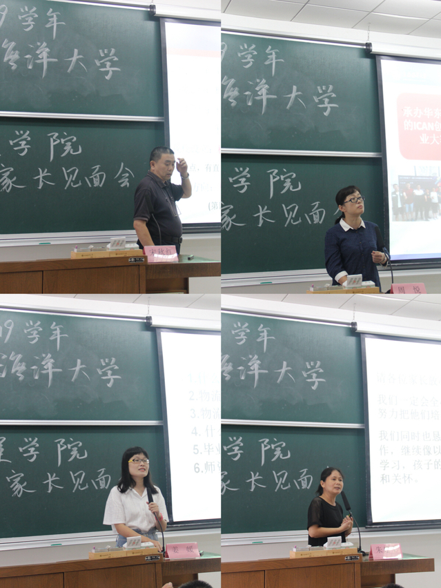 在进行相关课程的介绍时,各专业代表教师反复强调了“学习是大学里的首要任务”,提醒家长不忘督促鼓励孩子们努力学习,并在学习之余劳逸结合,在学有余力的情况下参加社团、学生组织等,以开阔自己的视野,增加人际交往能力,谨记“学生四年光阴似箭,学习目标清晰+合理的规划+严谨努力=难忘的大学生活”!