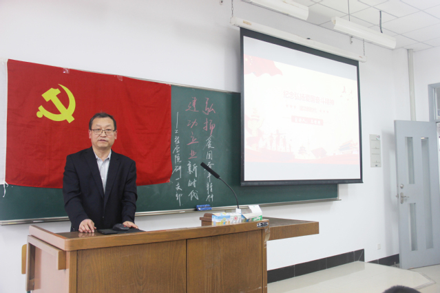 为认真贯彻落实习近平总书记系列讲话精神,推进学生党员更深刻领会爱国主义精神的内涵与意义,引领新时代学生党员建功立业,坚定“四个自信”,争做新时代爱国主义精神的传承者。2019年5月15日,565net必赢客户端王世明院长于1314教室开展了以“弘扬爱国奋斗精神,建功立业新时代”为主题的专题党课,565net必赢客户端研究生第一党支部全体党员同志到场听课。