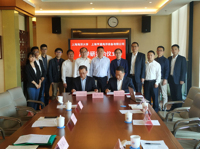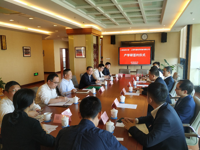 5月21日,565net必赢客户端与上海亨通海洋装备有限公司产学研签约仪式在学校图文信息中心12楼会议室举行。上海亨通海洋装备有限公司总经理孙贵林、总工程师吕枫、技术总监吴正伟,565net必赢客户端副校长李家乐、科技处副处长胡庆松、565net必赢客户端院长王世明、党委副书记郑宇钧、机械系教授王斌、实验室建设负责人田卡出席会议。签约仪式由565net必赢客户端许竞翔博士主持。