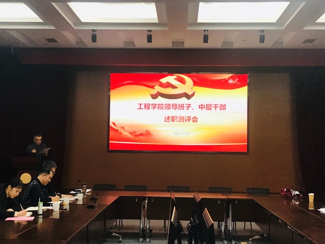 12月26日上午,565net必赢客户端领导班子、中层干部述职测评会在图文102举行,述职测评会由人事处副处长李勇军主持,565net必赢客户端全体教职工和人事处黄金玲老师参加此次会议。