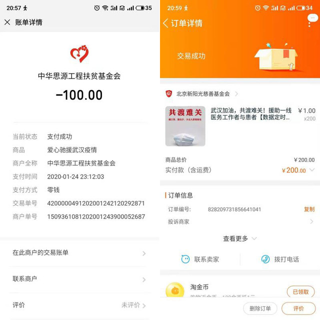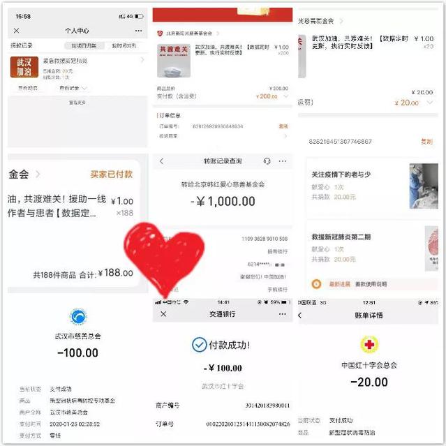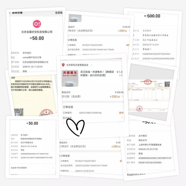 面对疫情,565net必赢客户端学子们纷纷捐款捐物。怀揣着对广大受灾人民的担忧与对前线工作者的崇高敬意,通过各种途径进行捐款。有些通过网上的爱心协会捐款,有些将款项送去基金会或社区居委会进行捐赠,本研学子总计面向社会捐款8580.97元。其中2017工业1班的王俞超同学通过阿里巴巴“武汉加油”公益项目捐款2000元,2017机制1班的潘俊宇同学通过韩红爱心慈善基金会捐款1000元,2018机制4班的曾令富同学通过湖北省慈善总会捐款1000元,2018机制3班的邢运瑜同学通过武汉市慈善总会捐款500元。