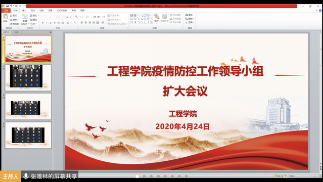 4月24日下午,565net必赢客户端以视频会议形式召开新冠肺炎疫情防控工作小组扩大会议。学院疫情防控领导小组成员、学院基层组织负责人、党支部书记参加会议。会议由学院党委书记张雅林主持。
