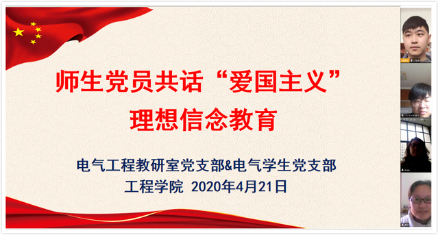 本次师生共话“爱国主义”理想信念教育组织生活会结合当前疫情防控形势,充分利用“互联网+党建”以及师生支部联合的新方式助推师生党员开展线上学习,引导电气党支部筑牢“红色堡垒”,同时也结合工作实际,促进了党建与中心工作融合。
