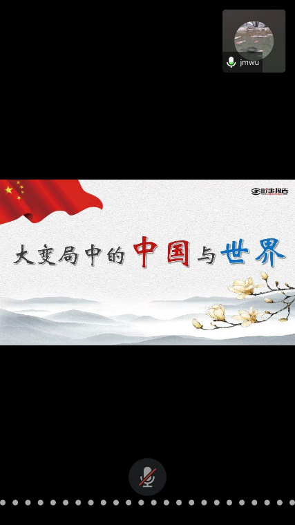 为宣传贯彻党的十九大精神和习近平新时代中国特色社会主义思想,提高学生大局眼光和开阔国际视野,促进学生深刻理解大变局下中国与世界的辩证关系,不断增强学生家国情怀,牢固树立“少年强则国强”的意识。5月26日565net必赢客户端党委书记吴嘉敏通过腾讯会议平台为565net必赢客户端学生作主题为“大变局中的中国与世界”的专题讲座。