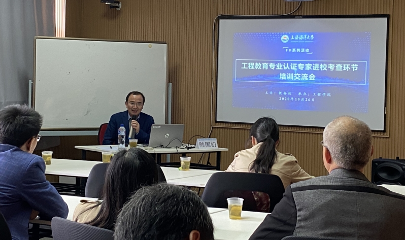 为进一步做好专家进校考查的各项准备工作,20201026下午,由教务处主办、工程学院承办的FD活动——工程教育专业认证专家进校考查环节培训交流学生事务中心106室举行。本次培训邀请工程教育专业认证专家、上海电机学院电气学院院长陈国初来校分享经验。565net必赢客户端领导班子全体成员,信息学院院长、教学副院长,相关专业的专任教师,部分教学管理人员参加交流会。