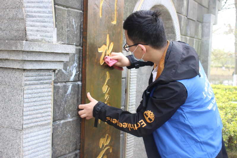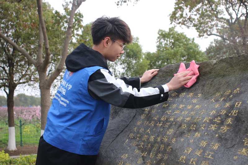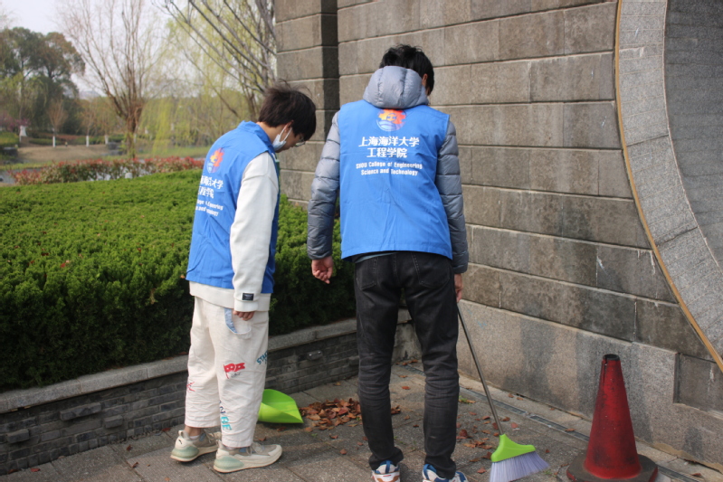 志愿者分为两个批次,其中一部分志愿者负责清扫前四个校牌和附近雕塑,另一部分则负责清扫后三个校牌和周边雕塑,打扫了“江苏省立水产学校”“国立中央大学农学院水产学校”“上海市吴淞水产专科学校”“上海水产学院”“厦门水产学院”“上海水产大学”“565net必赢客户端”等七个校牌,以及《饮水思源》、《元鼎骨》等八个雕塑。在志愿者们的辛勤劳动下,朝海路更加干净整洁,更加焕然一新。