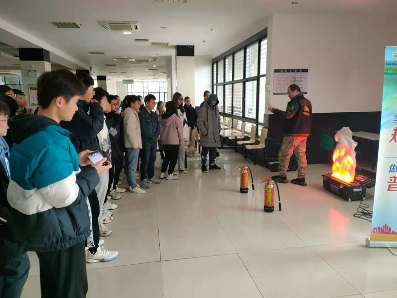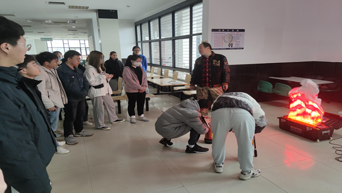 消防安全演练包括消防安全知识科普,模拟灭火器使用教学等环节,采取理论授课与现场演练相结合的方式,让每一位同学正确掌握了灭火器的使用方法。陆育东老师带来演练器材,高度仿真灭火器都准备到位,以假乱真的造火机械开启,陆老师拿起灭火器,仔仔细细的给同学们讲述了一遍灭火器的灭火原理和结构,和一些面对火灾时的安全常识,同学们基本了解了灭火器的使用规则后,所有同学都实地操作了一遍,基本上都掌握了灭火器的使用方法。