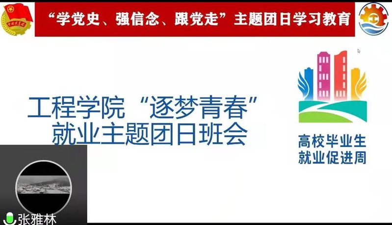 党的十九届五中全会强调,强化就业优先政策,千方百计稳定和扩大就业,完善重点群体就业支持体系,促进高校毕业生就业是就业工作的重中之重。为进一步完善毕业生就业支持体系,全力促进毕业生更加充分更高质量就业,同时积极深入推进团中央“学党史,强信念,跟党走”的主题学习教育,助力广大青年增添奋斗力量,在思想与行动上尤其是就业发展方向上,汇聚起奋进的青春力量。565net必赢客户端于5月17日在腾讯会议平台开展了“逐梦青春”就业主题团日班会,565net必赢客户端党委书记张雅林、党委副书记郑宇钧、优秀毕业生代表王玉双和学院全体辅导员出席本次会议,学院全体毕业班同学、全体党员、入党积极分子和团学骨干参与了本次会议,会议由学院就业指导员主持。