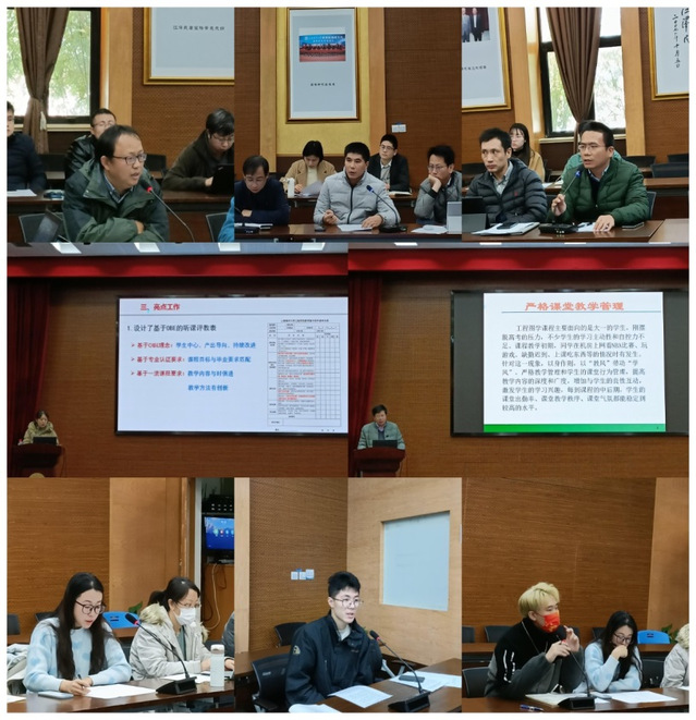 优秀课程思政教师、带教导师代表毛文武、最受欢迎好老师代表赵波分别围绕“工程图学课程跨学院跨专业“三全育人”的探索和实践”、“教之责、管之责、育之责”分享了自身10多年的执教感悟,既表现出对学生的严与爱,也表现出对教育事业的忠与诚。青年教师代表田红军从教学观摩活动中得到了很好的启发,认识到什么是真正的好课,并对自己的授课进行反思和改进。值得一提的是,与会学生代表代爽、居孝渊、陈实功等同学围绕“我心目中的好课堂”分别从“定义”、“形式”、“效果”及存在的问题困惑等方面做了阐述,同学们表示一节好课堂应该以生为本,以学为本,以素质为本,让师生情感有温度、学生参与有广度、自主学习有强度、学生合作有效度、学生探究有深度、课堂文化有高度。在教学方法上希望能以“实例+教学”结合,以生活与实际结合,同时能给学生更多自主交流展示机会。