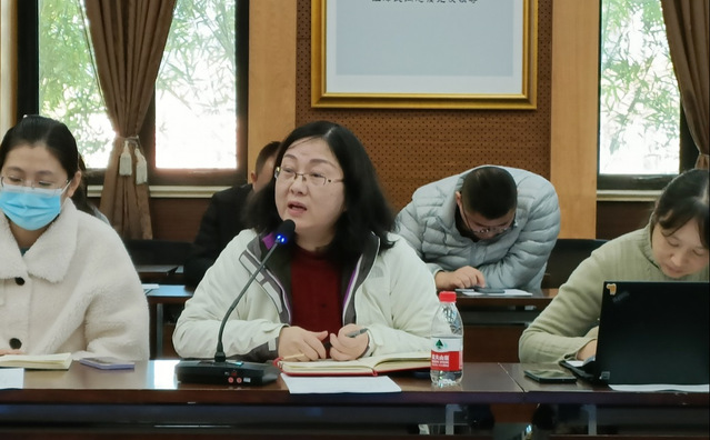 晏萍带领大家学习《上海市教育发展“十四五”规划》,号召各系室、各党支部认真学习、深刻领会,对标一流标准,围绕立德树人,坚持五育并举,以产教融合为抓手,持续优化资源配置布局,提升育人水平和创新策源能力,促进学生德智体美劳全面发展。刘雨青总结了学院期中教学检查“集中听课、集中观摩、集中研讨”三步走工作实效,并分享自己基于OBE的线上线下混合式课堂教学经验,指出课堂是主阵地,教学改革无止境。
