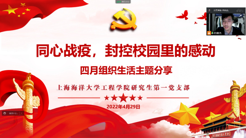 组织生活中,党员同志集体参与讨论以“同心战疫,封控校园内的感动”为主题的分享活动。张亮同志分享说,晚上吃上了企业捐赠的金枪鱼水饺,并且老师在了解到学生不够吃后又紧急在微信群发消息增加水饺数量,保证我们能吃饱,这一点让他觉得老师很温暖,把学生一直放在心上,感谢老师的辛勤付出。鲁祥同志说到,即使每天早上五点半起来做抗原检测,同学们也没有因为时间太早抱怨,因为大家都知道老师们和志愿者的不易,非常感谢各位老师的付出。15小区的李进同志作为密接人员,分享他从学校被组织前往无锡进行隔离的经历,再一次感谢学校对学生的关心和兄弟省市对上海的援助。