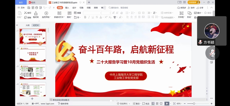 2022年10月28日,工业物工学生党支部全体正式党员、预备党员在线下565net必赢客户端楼302,线上腾讯会议两个会场开展了工业物工十月党组织生活,会议上认真学习了党的二十大报告,党员和预备党员分别谈谈个人感想,同时学习了新党章内容。