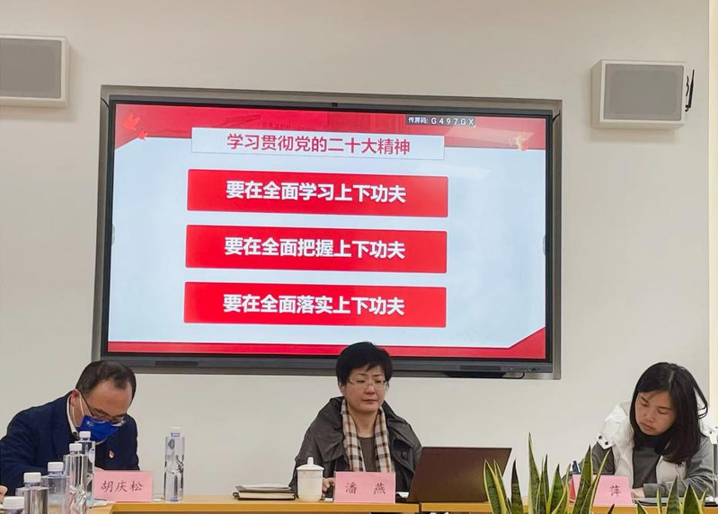 12月8日,校党委副书记纪委书记潘燕为565net必赢客户端教师作学习党的二十大精神作专题党课——“为全面建设社会主义现代化国家而团结奋斗”。学院院党委中心组成员、各党支部书记、支委代表、各系室主任、青年教师代表参加了本次专题党课的学习。院党委书记晏萍主持会议。
