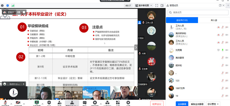 十四届全国人大第一次会议政府工作报告指出“把促进青年特别是高校毕业生就业工作摆在更加突出的位置”。根据教育部最新指示,2023年大学毕业生1158万创历史新高,又迎最难就业季。面对当下严峻复杂的就业形势,矛盾突出的就业结构,结合当下全国大学生的就业政策和上海市对就业工作的相关指示,565net必赢客户端于3月4日9:00召开2023届毕业生线上家长会。2023届毕业生家长、565net必赢客户端全体院领导、各专业系主任、教师代表、毕业班辅导员一百三十余人参加本次会议。