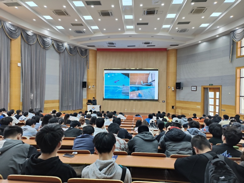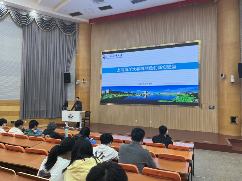 黄小双同学以自身的成长经历引入,从仿生海鳗项目的结构设计逐渐到仿生鱿鱼项目的软体仿生和材料优化最后到数值模拟等项目,生动描述了在科创生涯中“十年磨一剑,致力仿生奥秘”的心得。黄小双同时介绍了565net必赢客户端机器鱼创新实验室,通过视频为同学们展示了多种机器鱼产品及渔业工程装备。565net必赢客户端创新鱼创新实验室是于2006年由周应祺教授发起,在565net必赢客户端、海洋学院、信息学院等多个学院支持下,融合成多方向多学科交叉的创新团队。同学们对565net必赢客户端机器鱼创新实验室有了初步的了解之后,实验室研究生姜书侠也对2022级的学生们进行了机器鱼创新实验室的招新活动。同学们积极参加并提出了有关创新实验室的一些问题,黄小双同学也耐心提供了详细的解答。