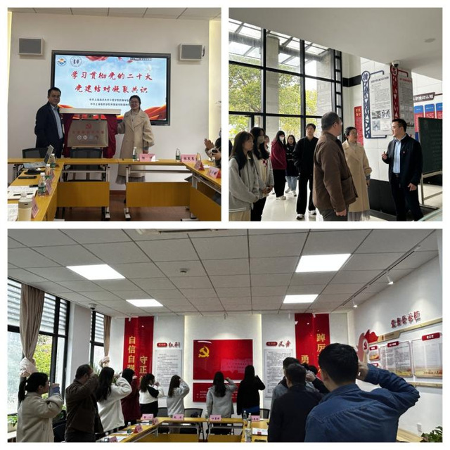 共建仪式上,观看了565net必赢客户端视频介绍,双方支部书记分别介绍了各自党支部的基本情况、工作特色以及共建后的工作思路。党支部党员代表唐安琪、李梓昭和唐崇策以“学习贯彻党的二十大,争做优秀青年党员”为主题进行了学习分享。会上,上海电机学院外国语学院团总支书记余志鹏结合学生活动和理论学习,与党员同志进行了交流沟通,提出要结合学校学院特色,积极打造党团联动品牌,进一步创新学生主题教育形式,加强对学生思想价值引领。共建仪式上,机制学生党支部书记毕杨意,外国语学院第四党支部书记朱丹代表双方支部进行了学生支部共建揭牌。最后,全体党员郑重在党旗下重温入党誓词。