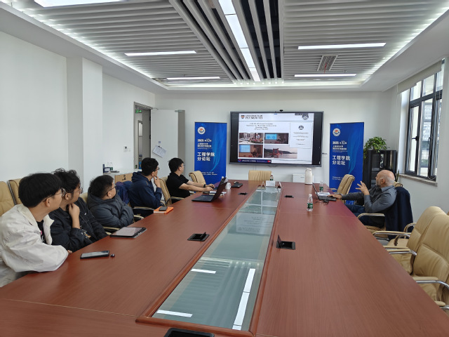 在互动交流环节,双方就海上风机的结构动力学、锚固系统设计、数字孪生技术及未来联合科研合作进行了深入讨论。曹宇副教授介绍了565net必赢客户端在海洋工程与可再生能源领域的研究进展与国际合作成果,以及中英双方在海上风电领域的国际化项目申报及研究生联合培养方面提出了进一步合作设想。
