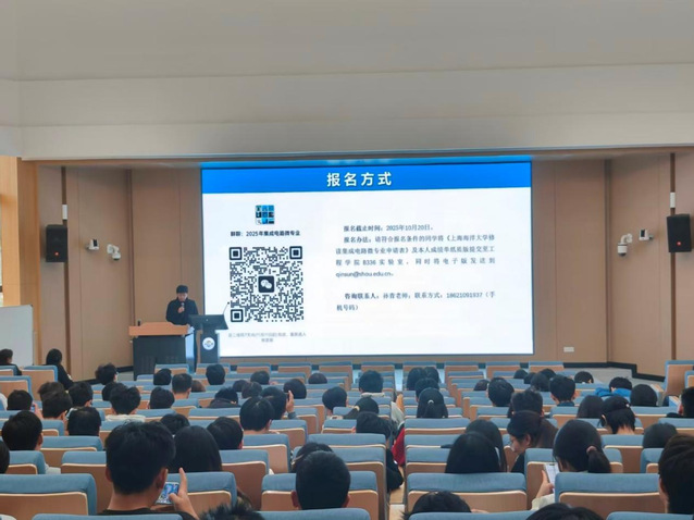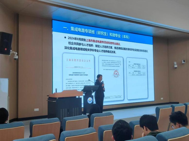 刘雨青副院长在发言中补充强调,学生应做好自我评价与职业定位,学校将持续搭建就业平台,拓宽学生就业渠道。她还详细介绍了“集成电路微专业”的建设背景和特色优势。该微专业采用与学术硕士不同的考核方式,注重产教融合,学生将有机会进入企业进行为期两年的实习,由企业导师和学校共同评定成绩。合作企业主要集中于临港新片区,涵盖集成电路全产业链的龙头企业,目前已经与多家企业达成合作。